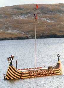 On the Right is the Galley SJŲ ULV at anchor at Hillswick.
